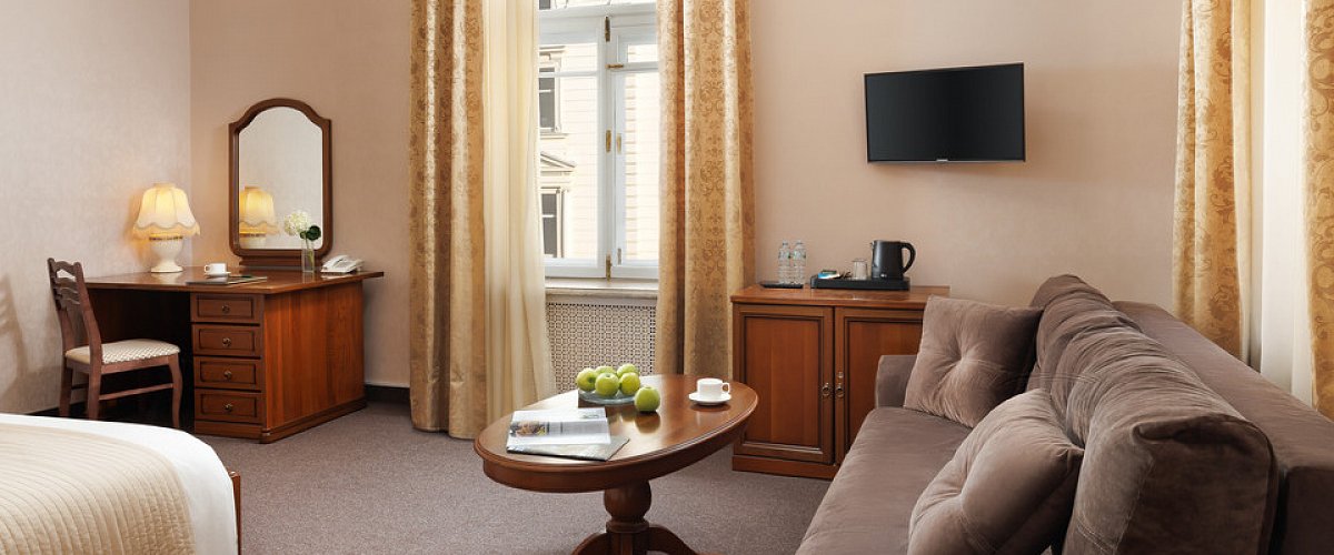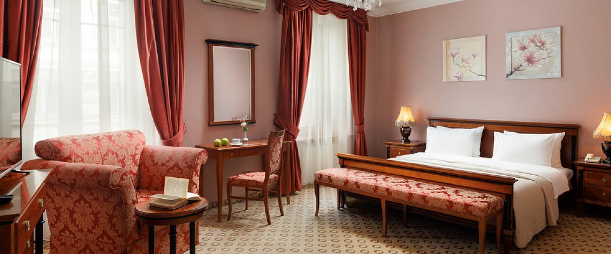 The Budapest Hotel is a distinguished four-star property housed in a historic 19th-century building designed by architect Freidenberg in 1876. Combining old-world charm with modern comfort, the hotel preserves the elegance of pre-revolutionary Moscow while offering contemporary amenities.Each room is individually designed in a classic style and equipped with modern conveniences, including air conditioning, free Wi-Fi, a minibar, a safe, a tea set, and satellite TV. Guests can start their day with a rich breakfast buffet featuring hot and cold dishes, and later unwind in the cosy bar with a fine selection of drinks and light meals.